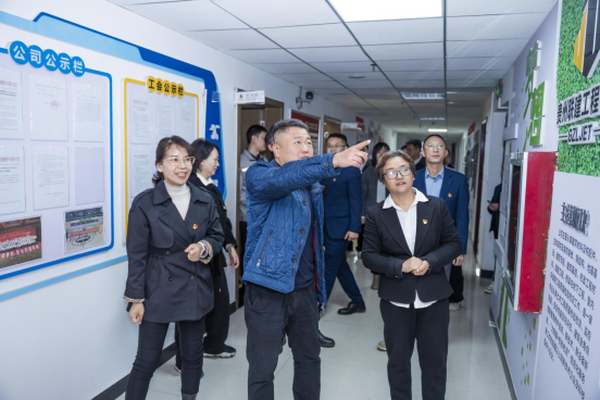 会前,在企业讲解员的引导下,参观了企业展厅、党建文化阵地、智能化检测实验室等。通过实地观摩与互动交流,支部成员深入了解了联建公司“党建强、发展强”的实践路径,以及企业在工程质量检测、技术创新与数字化转型方面的成果。企业党建中的“党员先锋岗”“双培养机制”“两亮一比”等特色做法,为高校党建提供了鲜活经验。