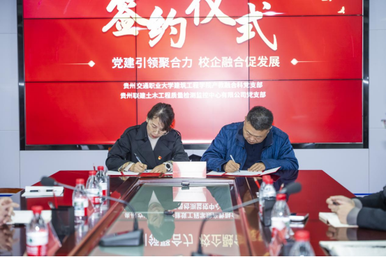 为深入贯彻落实新时代党的建设总要求,深化党建领航道路与桥梁工程专业群,构筑“红色高桥”党建品牌新范式,推动党建工作与业务发展深度融合,12月11日,我校建筑工程学院产教融合科党支部与贵州联建土木工程质量检测监控中心有限公司党支部共同组织开展“党建引领聚合力,校企融合促新篇”联建共建活动。此次活动以党建为纽带,旨在搭建校企交流平台,促进产学研用协同创新,助力地方经济高质量发展。贵州联建党支部书记、董事长于可、建筑工程学院党委书记肖志红、建筑工程学院产教融合科党支部书记王转及双方支部党员、业务骨干共同参加。