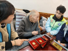在社区协调安排下,志愿者一行走访慰问了中国人民抗日战争胜利80周年纪念章获得者、百岁老人胡俊同志。胡老结合自身经历,为社区工作人员和学生志愿者讲授了一堂生动的红色教育课,并深情寄语青年学生“好好读书、好好生活,努力工作”,进一步激发了大家的爱国情怀与奋斗热情。同学们认真聆听、详细记录,深刻感受到老一辈革命者的崇高精神与坚定信念,纷纷表示将铭记历史、传承精神,把红色基因融入学习实践,勇担时代使命,贡献青春力量。